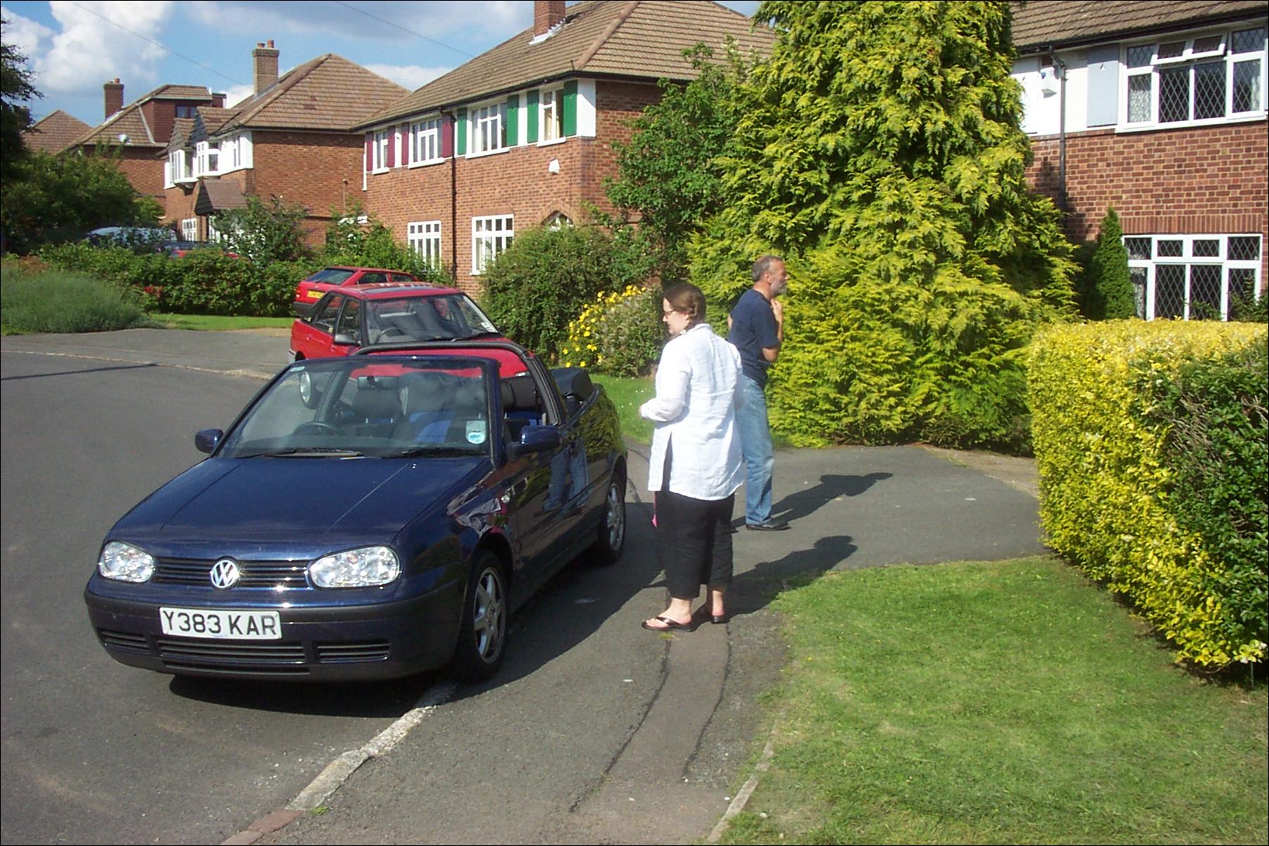 Our hedge at right, Dad is looking towards the house