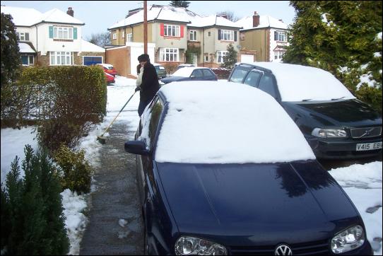 Nancy sweeping the drive