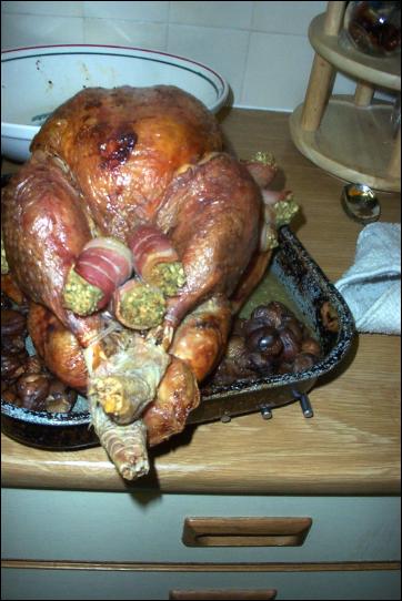 Dinner. The bowl behind is actually huge, thus the size of the bird is not evident here
