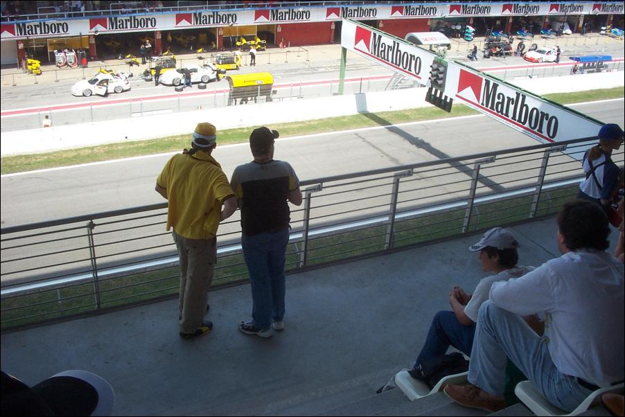 First view of the track, with the Porsches practising